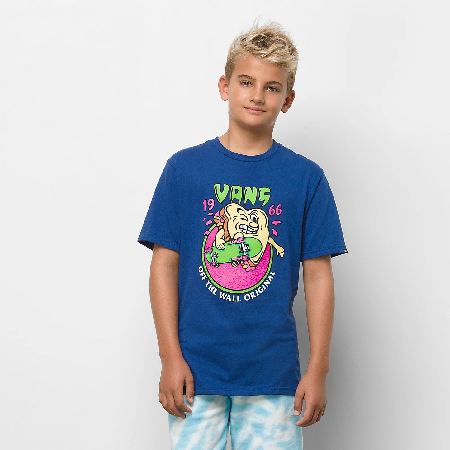 The Boys Comic Grind T-Shirt is a tee with short sleeves and cartoon skateboarder graphics on the front.